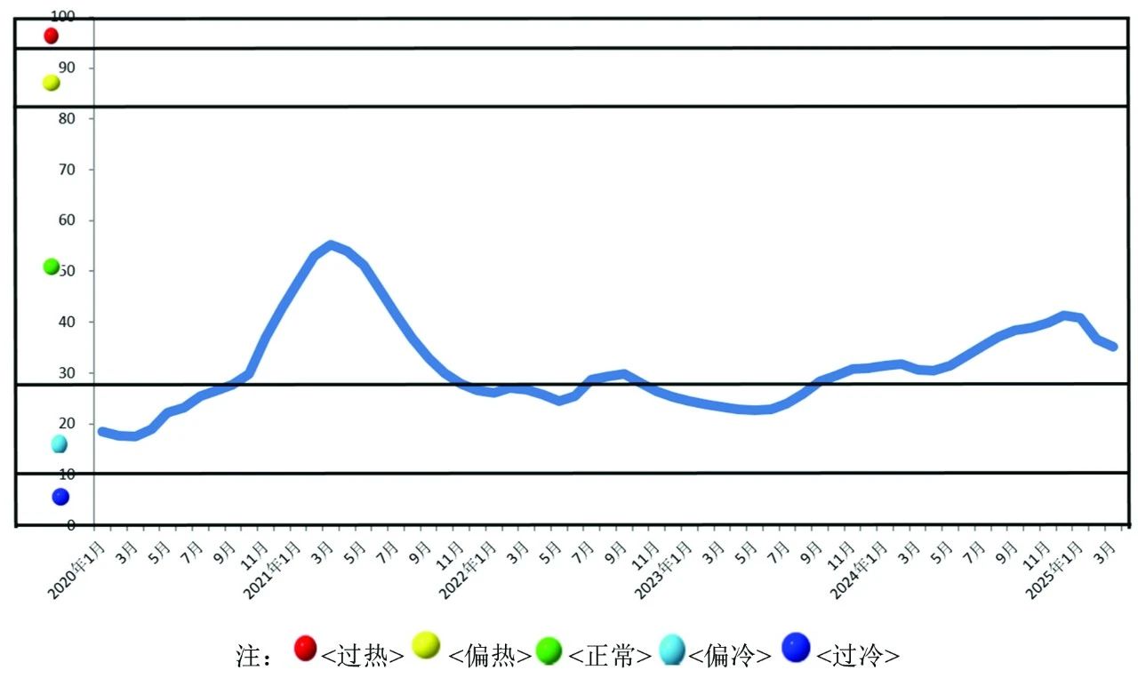 3月份,中國有色金屬產(chǎn)業(yè)景氣指數(shù)為35.1,較上月回落1.5個百分點。從總體來看,3月份景氣指數(shù)持續(xù)回落,但仍處在“正?!眳^(qū)間。